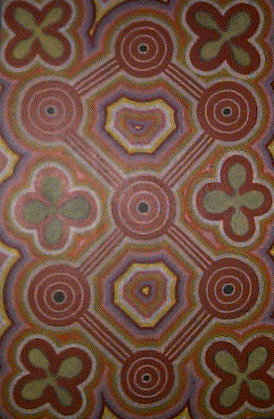 Between session, Steve Cisler displayed the original piece of art that became the motif for the conference. He noted that he got the painting in Austrialia some time last year. He liked it for its simplitity and connectivity. The painting is acrylic approximately 1' 6" X 2" 6" and is composed of many simple dots of color. The artist is XXX YYY.